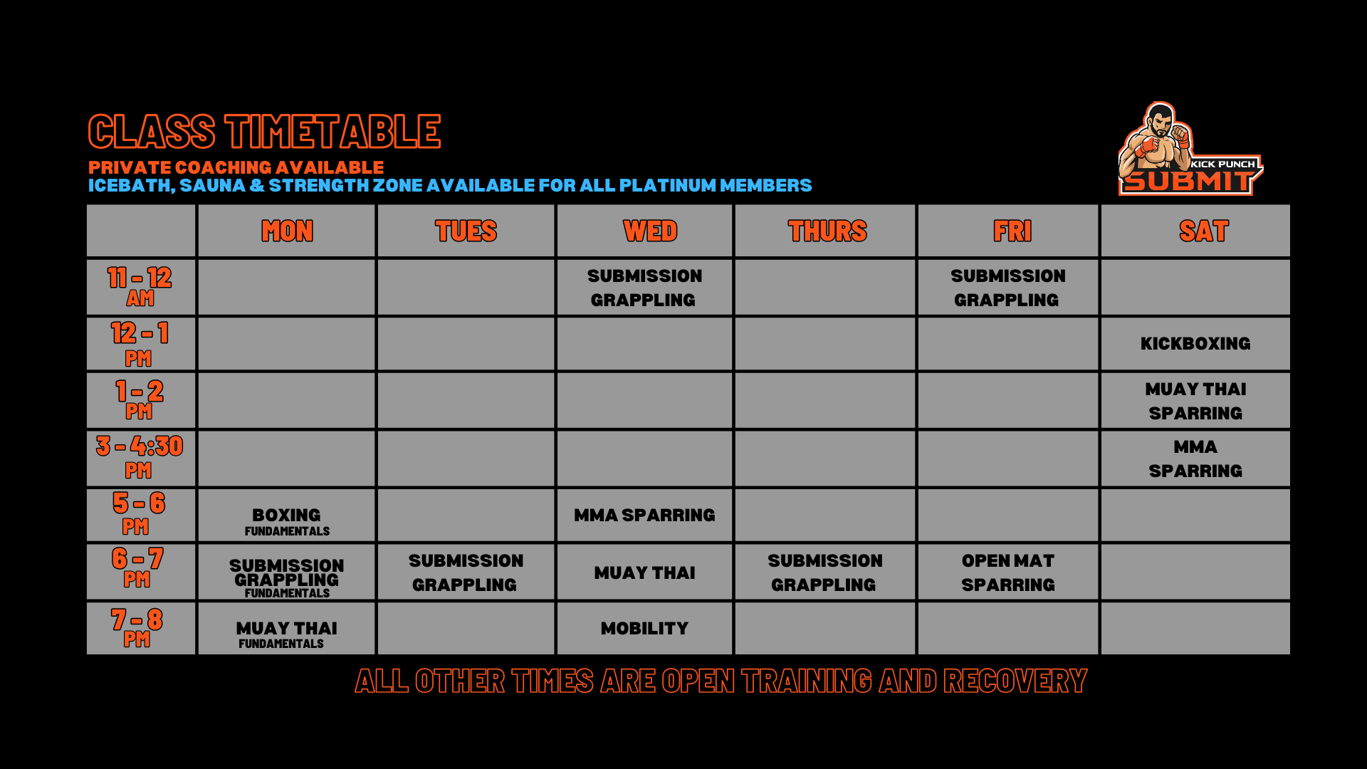 All Platinum and Gold members have 24/7 access. Find a time that suits you outside of class hours to lift weights, practice your skills and recover in the ice bath and sauna in your own time, your way.